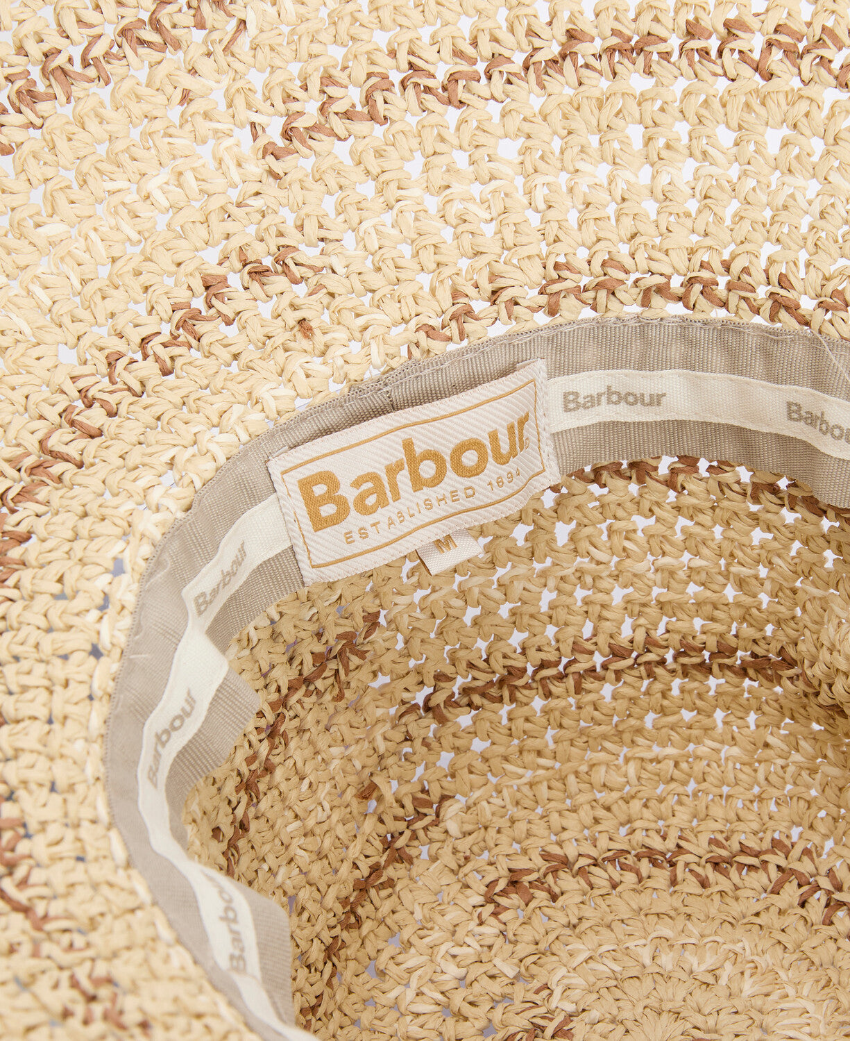 Poželite dobrodošlicu novom ljetnom dodatku u vašu sezonsku rotaciju s Barbour Kelley Crochet Bucket Hatom. Ovaj osnovni ljetni model heklan je od papira s teksturom inspiriranom rafijom i detaljno ukrašen teksturiranim prugastim uzorkom inspiriranim tonovima prirode. Široki obod čini ga idealnim izborom za sunčane dane.