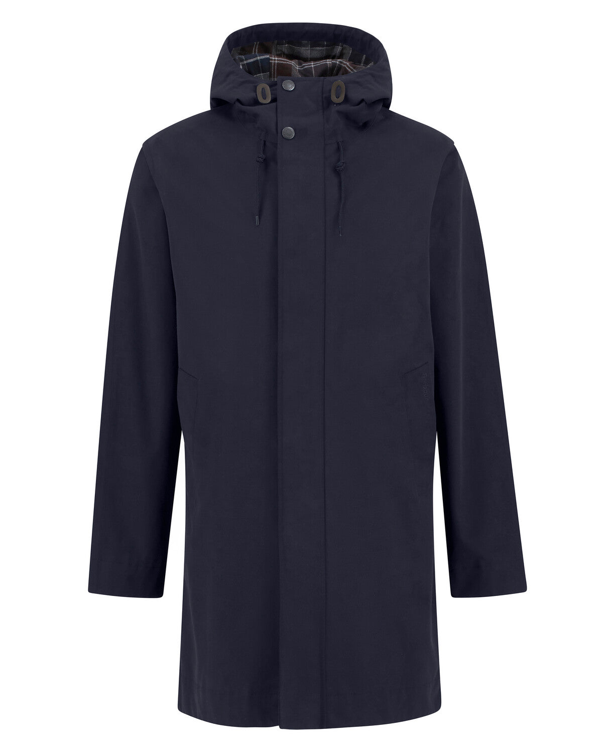 Barbour Hooden Lorden vodootporna jakna dužeg kroja odlikuje se skrivenim kopčanjem na gumbe i unutarnjom stražnjom panelom s tartan uzorkom. Ovaj elegantni klasični komad ima dva prednja ušivena džepa s tartan podstavom za dodatnu funkcionalnost, dok stražnja tartan podstava doprinosi profinjenom izgledu. Jakna je diskretno upotpunjena Barbour vezom na džepu.