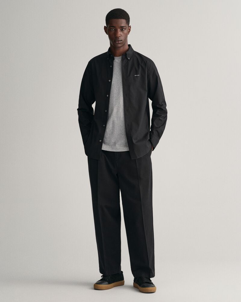 Savršen elegantan casual komad. Vrhunska pamučna Oxford košulja ima ujednačenu siluetu i GANT logo izvezen na prsima. Ima ovratnik na kopčanje, podesive manšete, zakrivljeni porub i kutijasti nabor s našom prepoznatljivom omčom za vješanje na stražnjoj strani.