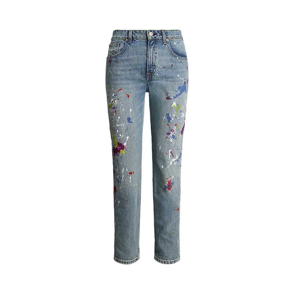 Izrađene od udobnog keper trapera s desnim krojem, ove boyfriend sužene traperice imaju sitotiskani motiv prskanja boje za ležeran izgled.