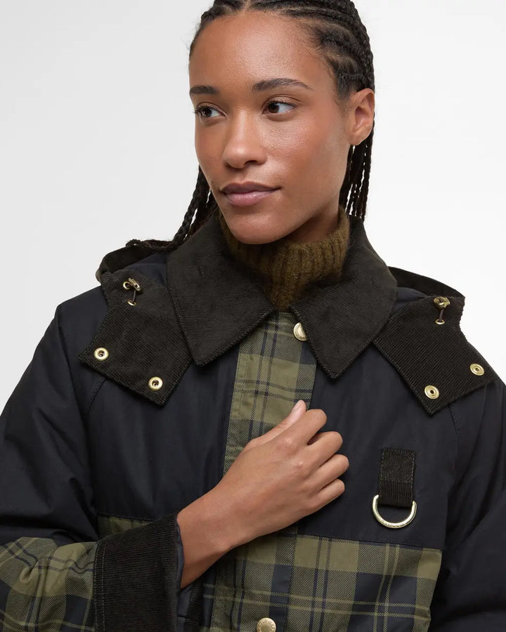 Nadahnuta našom legendarnom Spey jaknom, Barbour Elaine vodootporna jakna pruža vam pouzdanu zaštitu uz prepoznatljiv stil. Ističe se patchwork kombinacijom tartana, manšeterina i jednobojnih panela, a tu su i lagano podstavljena "snorkel" kapuljača, džepovi za grijanje ruku te manšeterinski detalji koji upotpunjuju klasičan Barbour izgled.