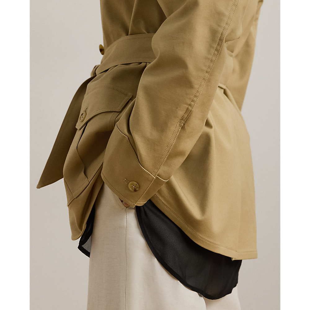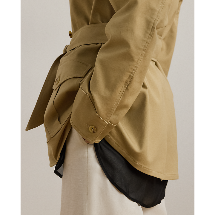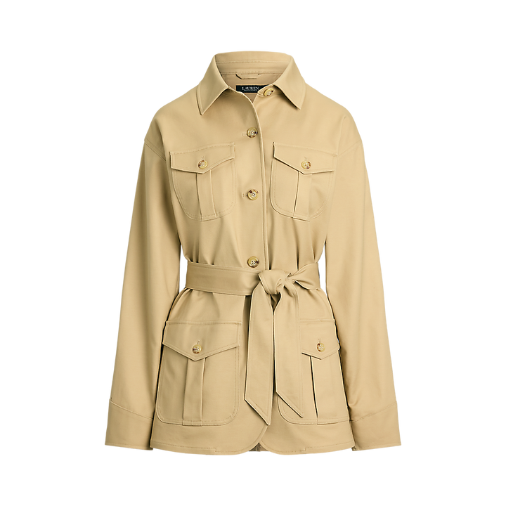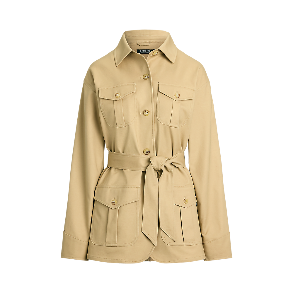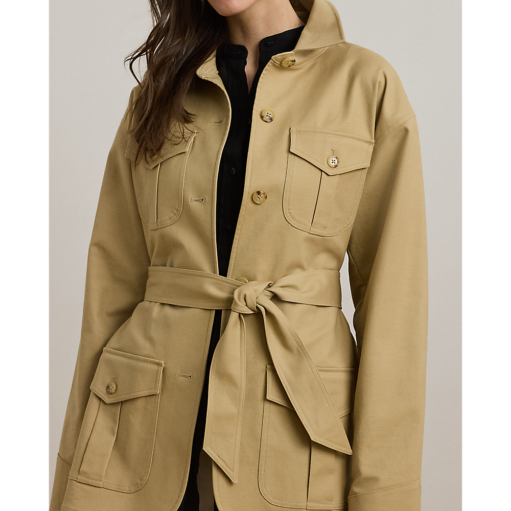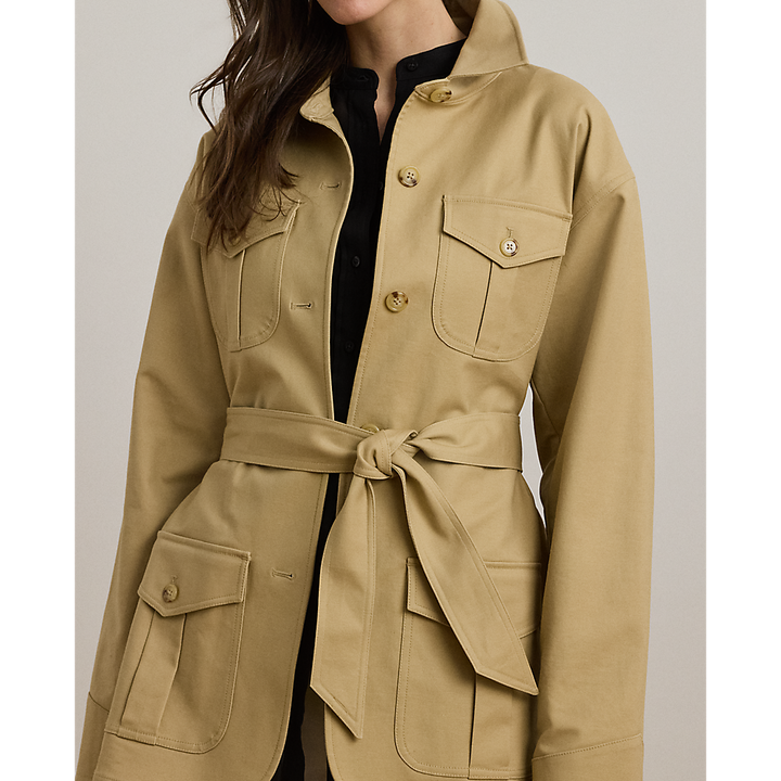Vojni stil u elegantnom izdanju. Ova ženska field jakna izrađena je od dvostrano tkane rastezljive pamučne tkanine, što pruža udobnost i lakoću kretanja. Karakteriziraju je brojni praktični džepovi, uklonjivi remen u struku i gumbi s rogovim efektom s ugraviranim logotipom "Lauren Ralph Lauren". Dizajnirana je za svakodnevnu praktičnost uz dozu profinjenosti.