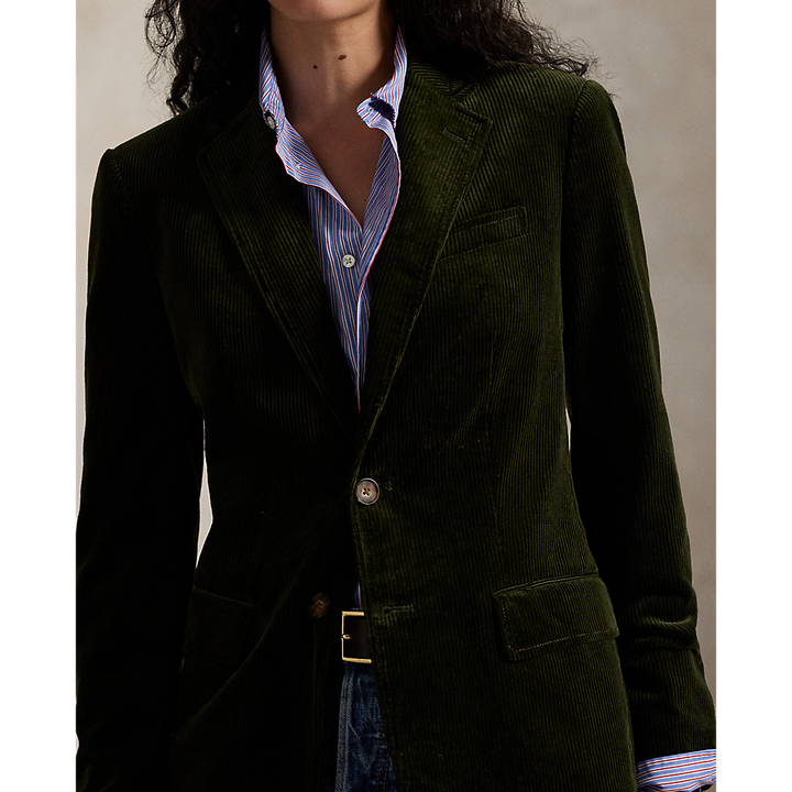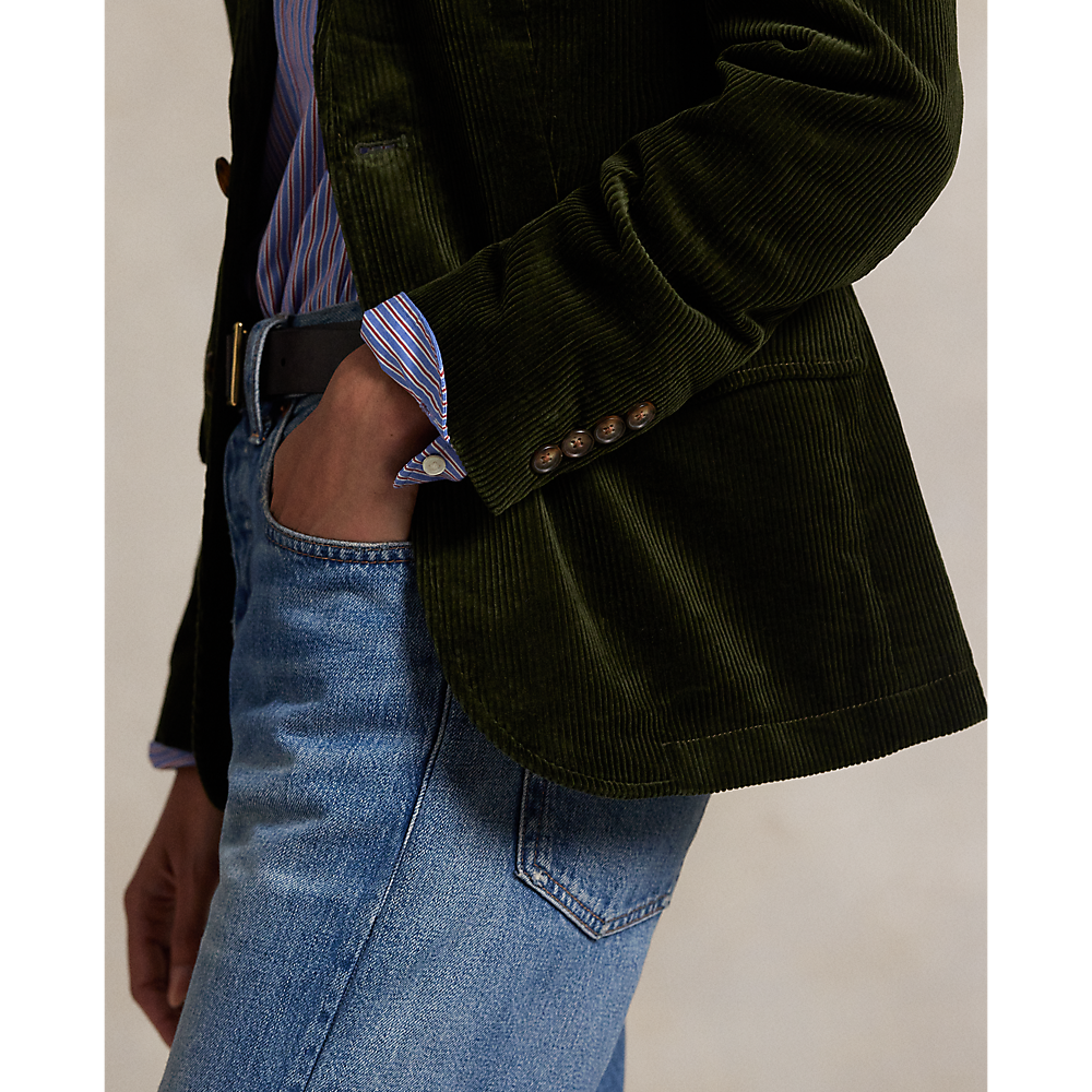 Izrađen od mekanog, širokorebrastog kordtkanog materijala, ovaj sako s jednom kopčom krojen je ravno i potpuno podstavljen glatkim keprovim cuprom.
