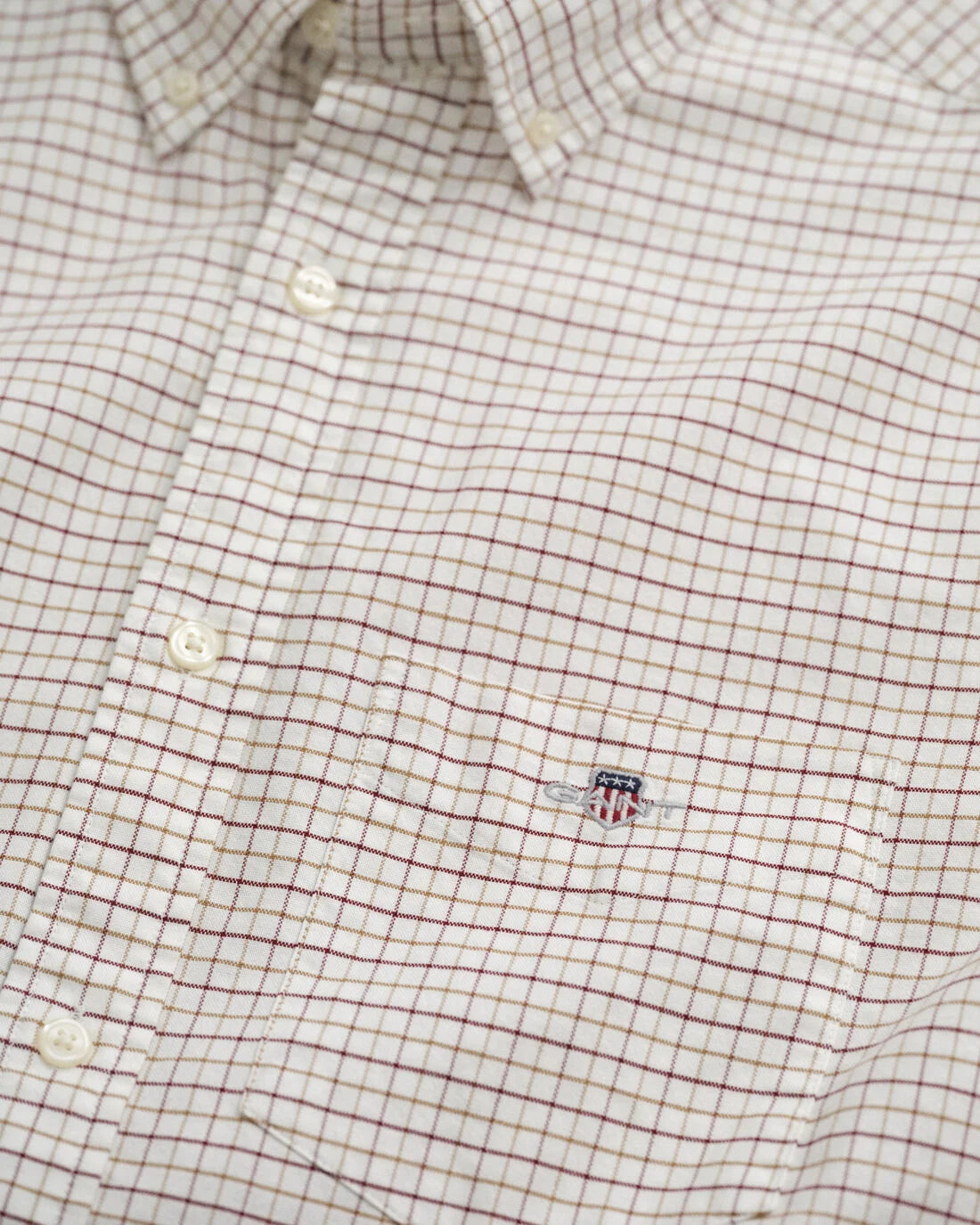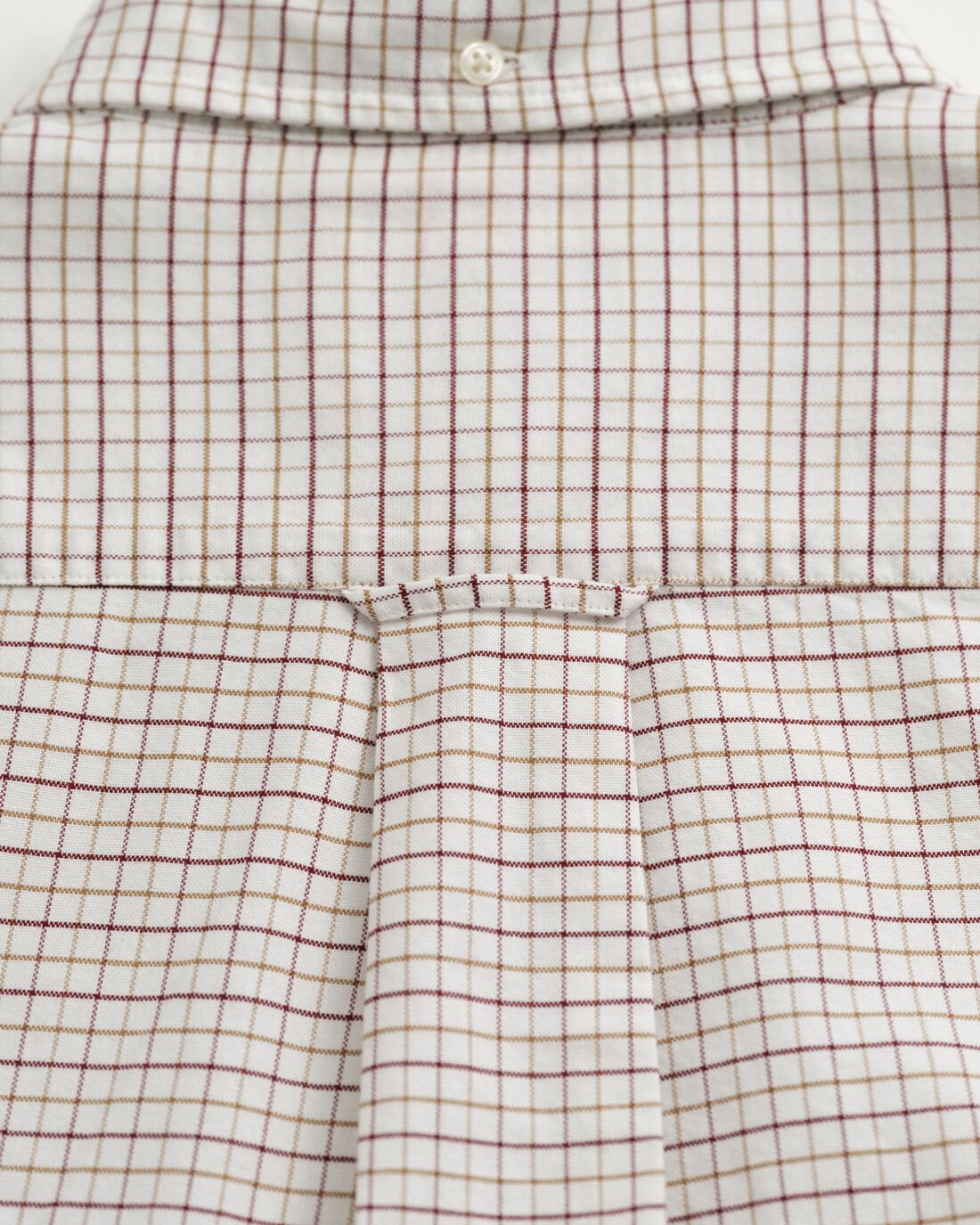 Svestrana, osnovna i prikladna za smart-casual stil, klasična Oxford košulja krasi naš prepoznatljivi vez "Archive Shield". Izrađena od pamuka, koristi mekanu Oxford tkaninu iz naše arhive košulja. Krojena za regular fit i ukrašena tattersall uzorkom po cijeloj površini, ova košulja ima ovratnik na kopčanje, podesive manžete te nabor s našom prepoznatljivom „locker loop“ petljom na leđima. Upotpunjena je suptilnim GANT štitnim logom izvezenim na džepu na prsima.
