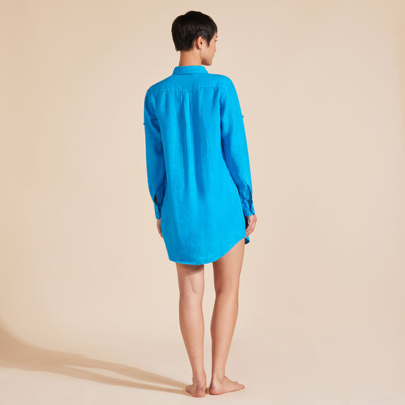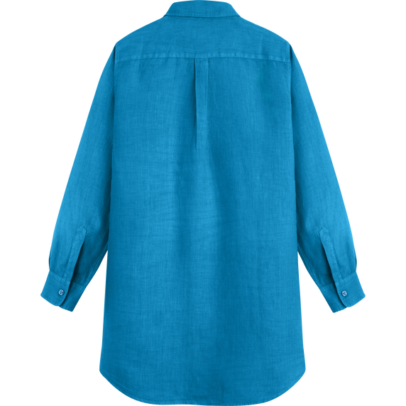 Nakon svakodnevnog kupanja preko kupaćeg kostima navucite žensku košulju-haljinu Fragrance. Lagana i plutajuća lanena tkanina posebno je udobna, što je čini savršenom za opuštene praznike. Opušteni kroj i dugi rukavi čine ovu košulju vrhunskim ležernim komadom.