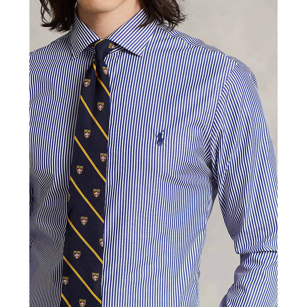Višefazni proces, uključujući predenje pređe pod visokim naponom, daje tkanini ove košulje od čistog pamuka blagu elastičnost.
