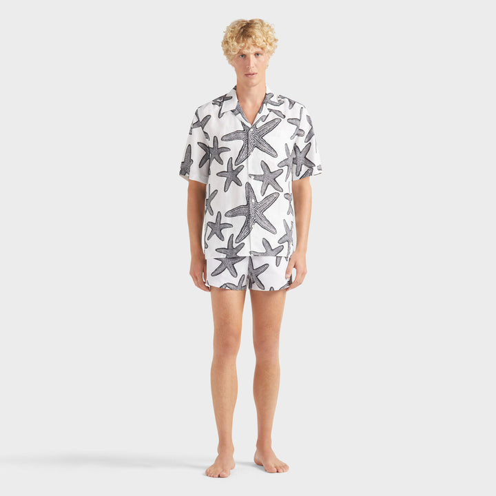 Zabavan print bowling majica ukrašena zvjezdicama koja će obogatiti vašu ljetnu garderobu. Izrađena od modernog lana i s izvezenom kornjačom u tonu na rubu.