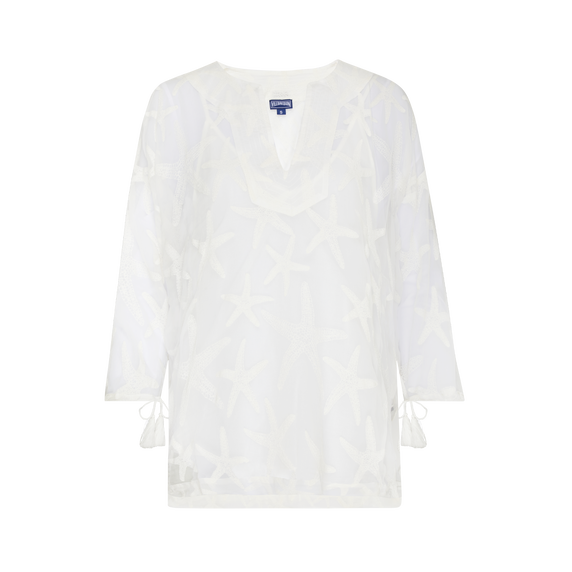 Izvrsna košulja s dugim rukavima od svilenog šifona ukrašena toniranim zvijezdama morskog psa, s resicama na rukavima i logom Vilebrequin na leđima za završni detalj.