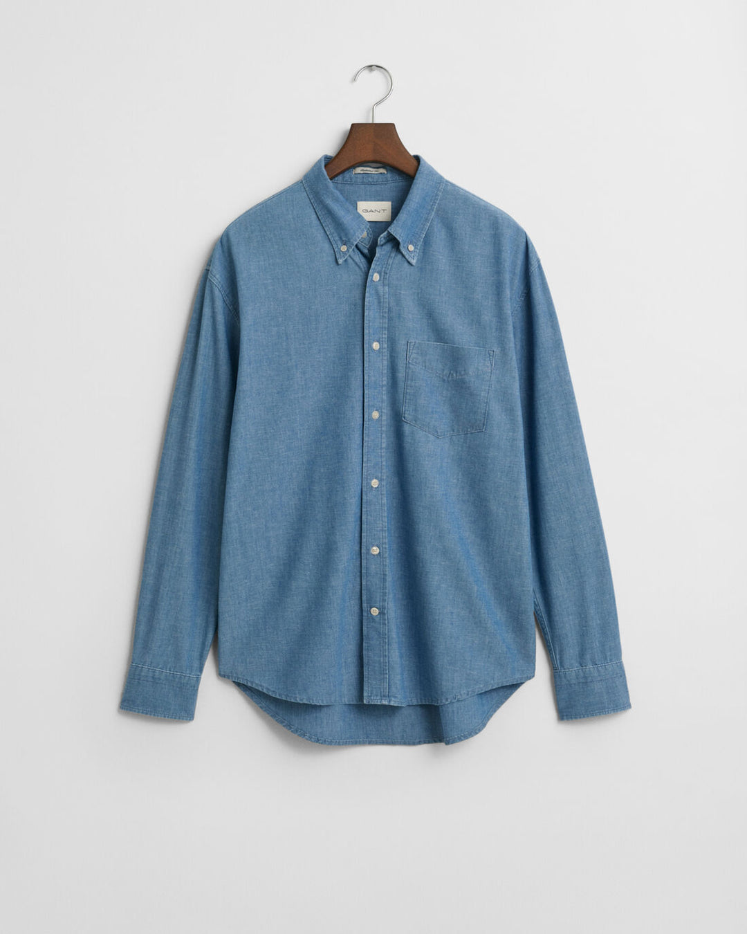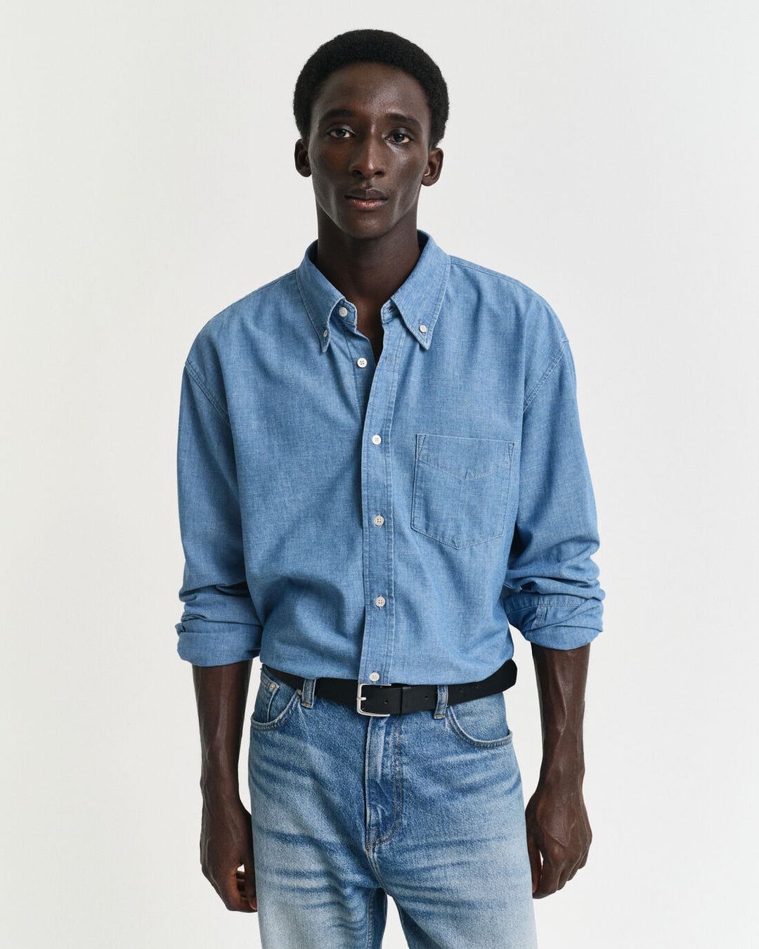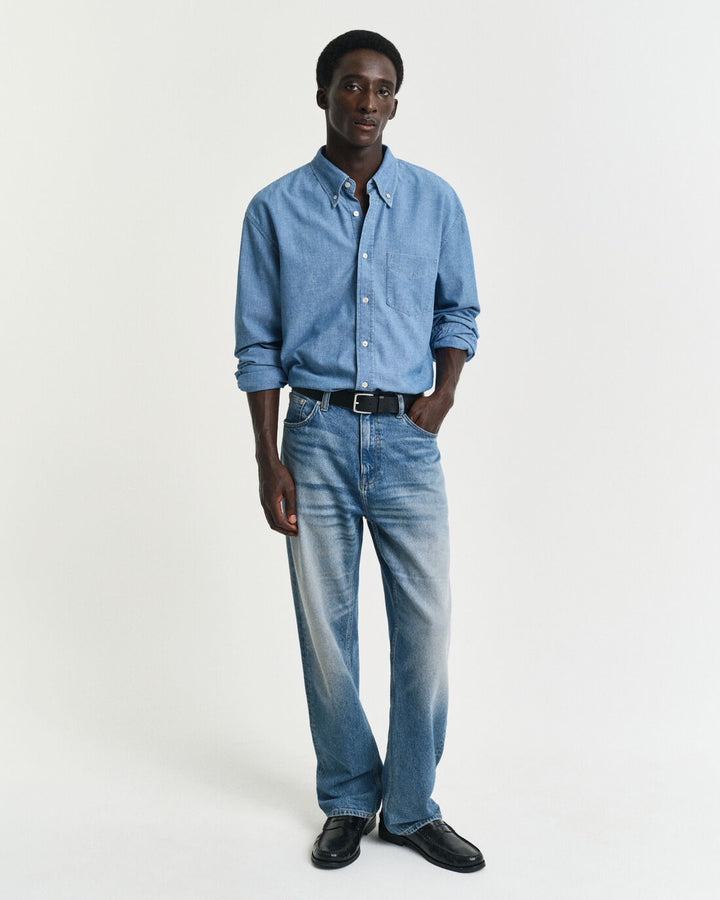 Ova košulja je tkana od premium indigo chambray materijala, koji uključuje mješavinu viskoze, lana, recikliranog pamuka i recikliranog poliestera. Prana za autentičan izgled, ima okovratnik na gumbe, podesive manžete, zakrivljeni rub, džep na prsima i box plisiranje s našim prepoznatljivim "locker loop" detaljem na leđima. Na košulji je izvezen klasični GANT logotip na placketu rukava za suptilni branding. Ova košulja ima opušteni kroj. Za uži fit, preporučujemo da odaberete manju veličinu.