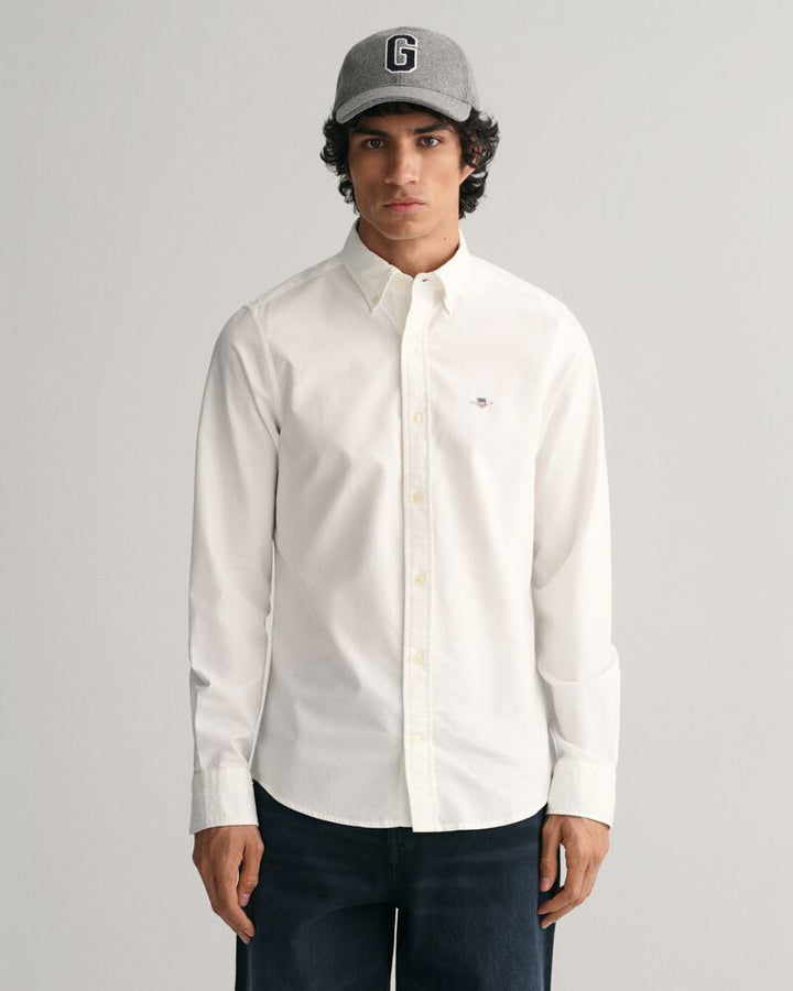Svestrana, osnovna i elegantno-ležerna, klasična Oxford košulja krasi naš kultni vez Archive Shield. Izrađena od izdržljivog pamuka, ovaj dizajn je uskog kroja i ima ovratnik na gumbe, zaobljeni rub, podesive manžete i nabore s našom prepoznatljivom petljom za zaključavanje straga.