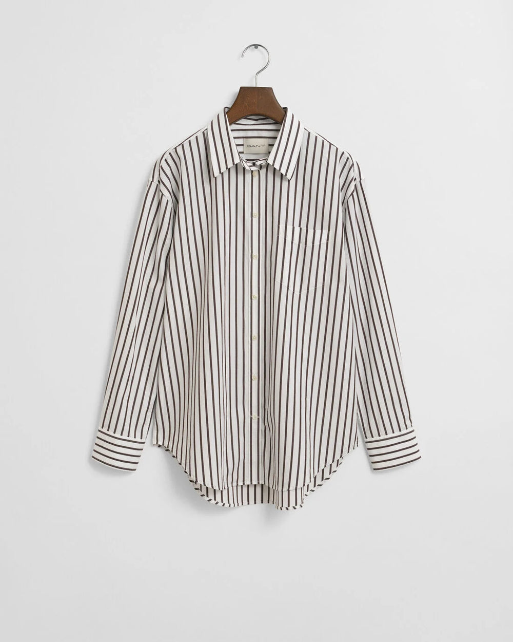 Izrađena od opranog pamučnog poplina za mekan osjećaj na dodir, ova košulja ima pruge obojene pređom. Pruža opuštenu, elegantno-ležernu siluetu, ima špicasti ovratnik, zaobljeni rub, džep na prsima i suptilan GANT logotip izvezen na rukavu. Ovaj odjevni predmet namijenjen je opuštenom kroju. Za bolje pristajanje preporučujemo manju veličinu.
