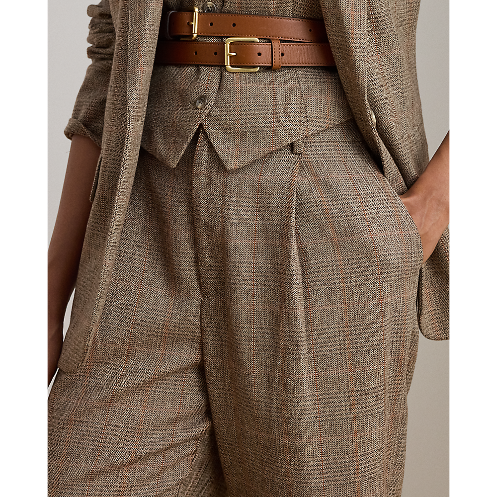 LRL Glen Plaid Pleated Cropped Trouser/Hlače 200979821001