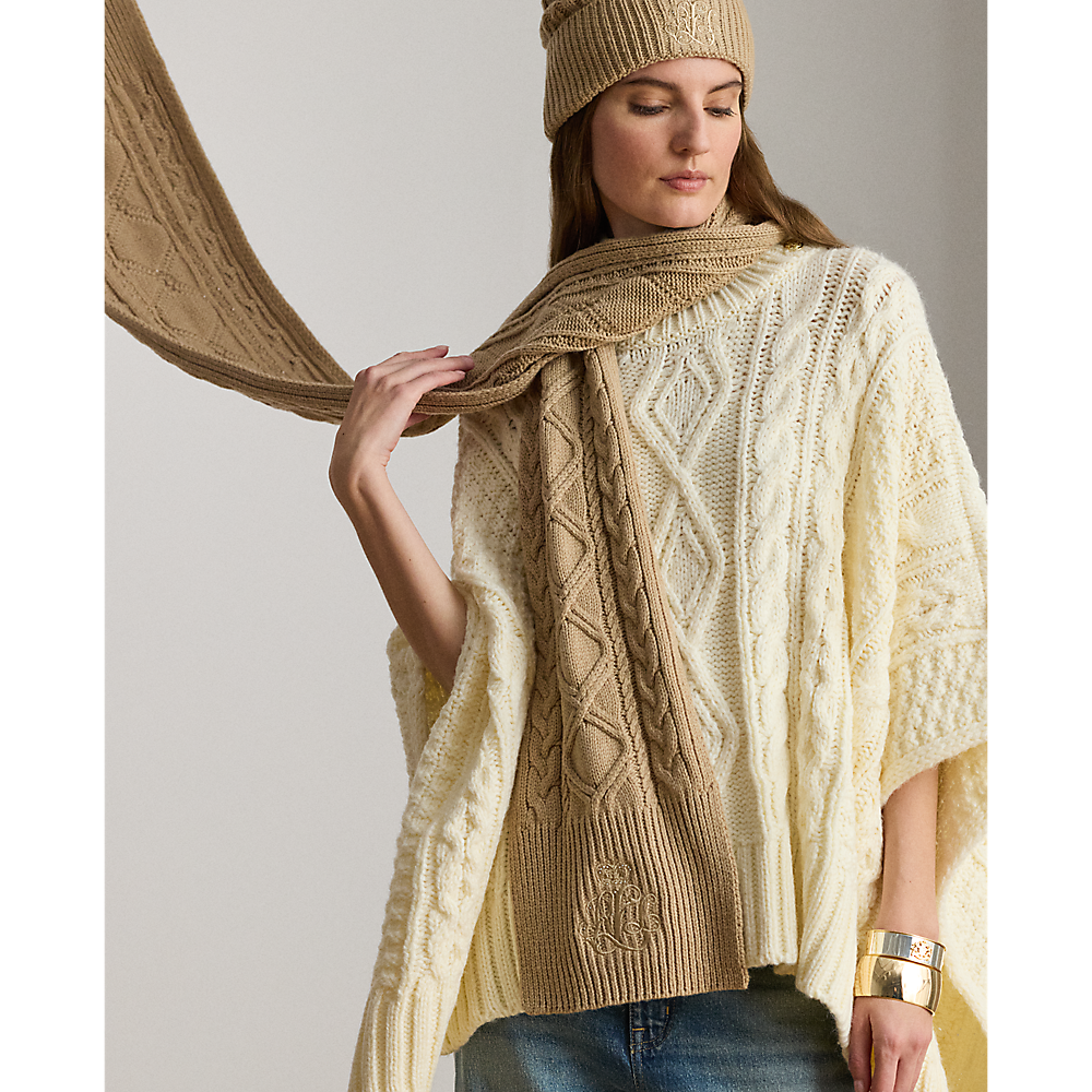 LRL Embroidered-Logo Cable-Knit Scarf/Šal 454P04467003