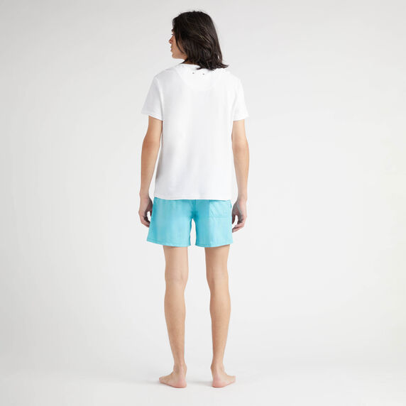 Savršen pad frotirne tkanine čini da Tiramisu jednobojna majica izgleda jednako dobro uz bermude ili ispod jakne. Idealan je izbor za izuzetno vruće dane jer je gotovo neprimjetna na koži. S kratkim rukavima i okruglim ovratnikom, pristaje uz svaki stil – od elegantnog do ležernog. Vilebrequin kornjača izvezena je u tonu na prsima.