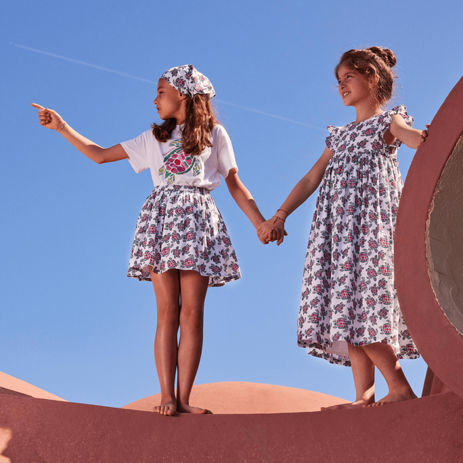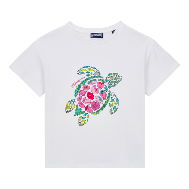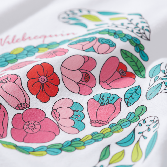 ornjača od cvijeća, ili cvijeće u obliku kornjače? I smislen i poetičan, cvjetni dizajn ove pamučne majice za djevojčice je poput provansalskog odmora punog mirisa.