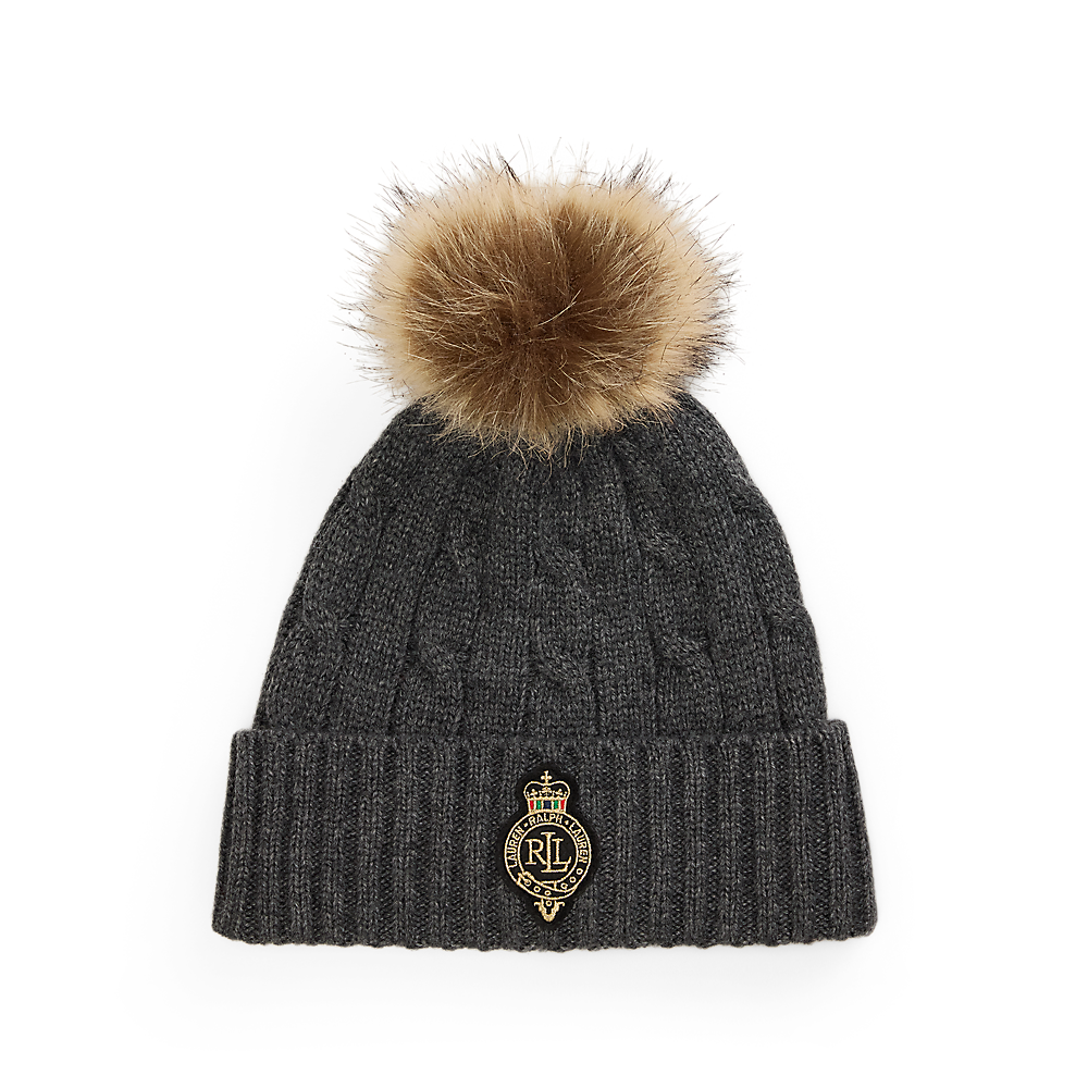 Ova kapa, ukrašena pomponom od umjetnog krzna na vrhu, karakterizira bezvremenski uzorak pletenja s pletenicom i Laurenin prepoznatljivi grb na manžeti.
