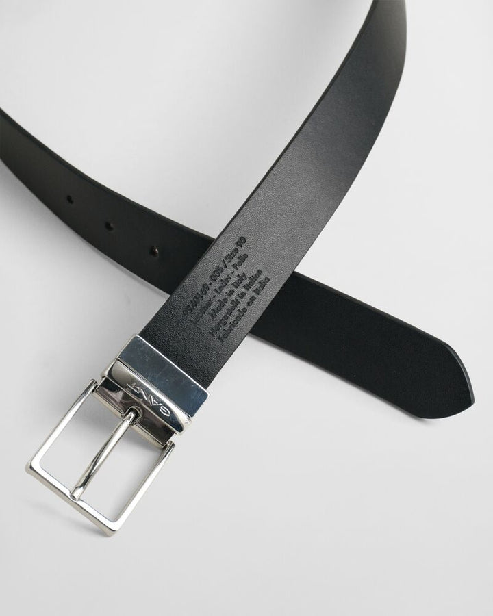Ovaj reverzibilni remen dizajniran je za regularni kroj. Ima dvobojnu traku, reverzibilnu kopču i metalni držač na kojem je ugraviran GANT logotip.