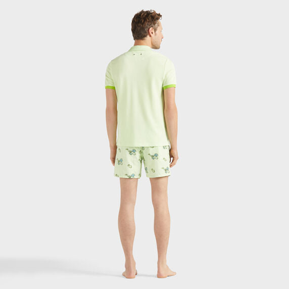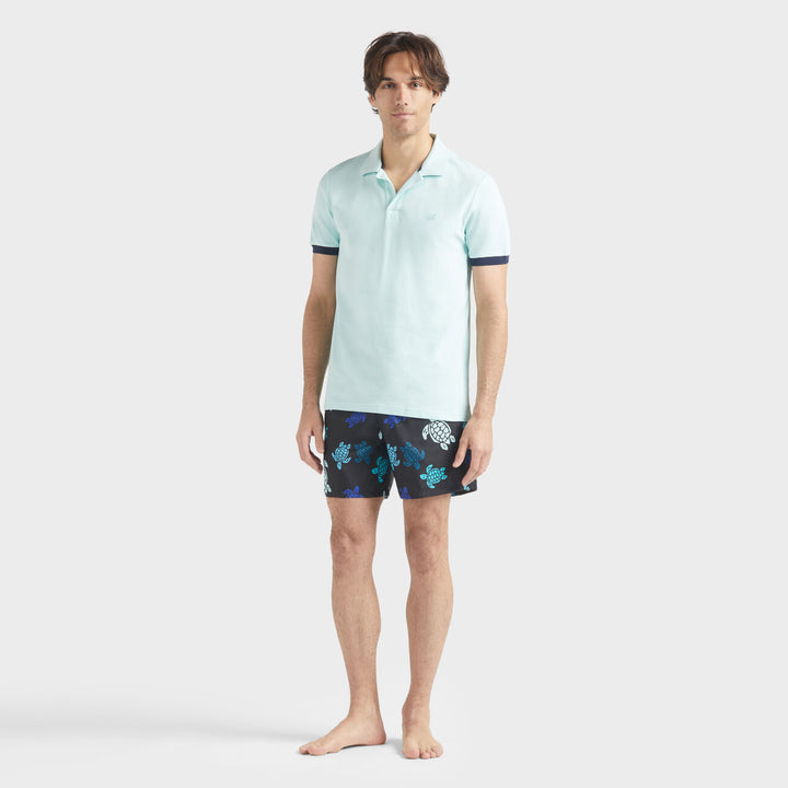 - Izvezena kornjača u tonu na prsima i printani Vilebrequin logo ispod ovratnika