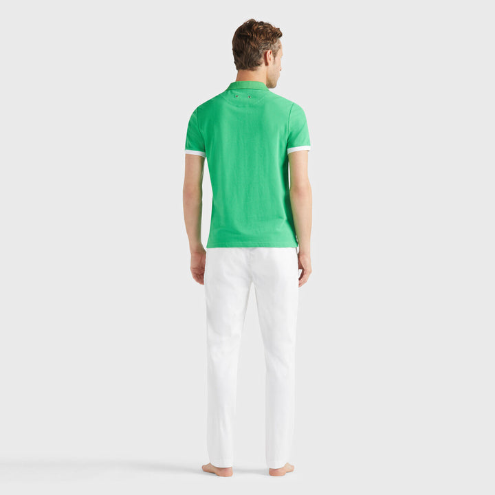 Ikonična polo majica zauzima središnje mjesto u ljetnoj garderobi s kratkim rukavima i rebrastim ovratnikom i manžetama. Ikonična izvezena kornjača upotpunjuje detalje.