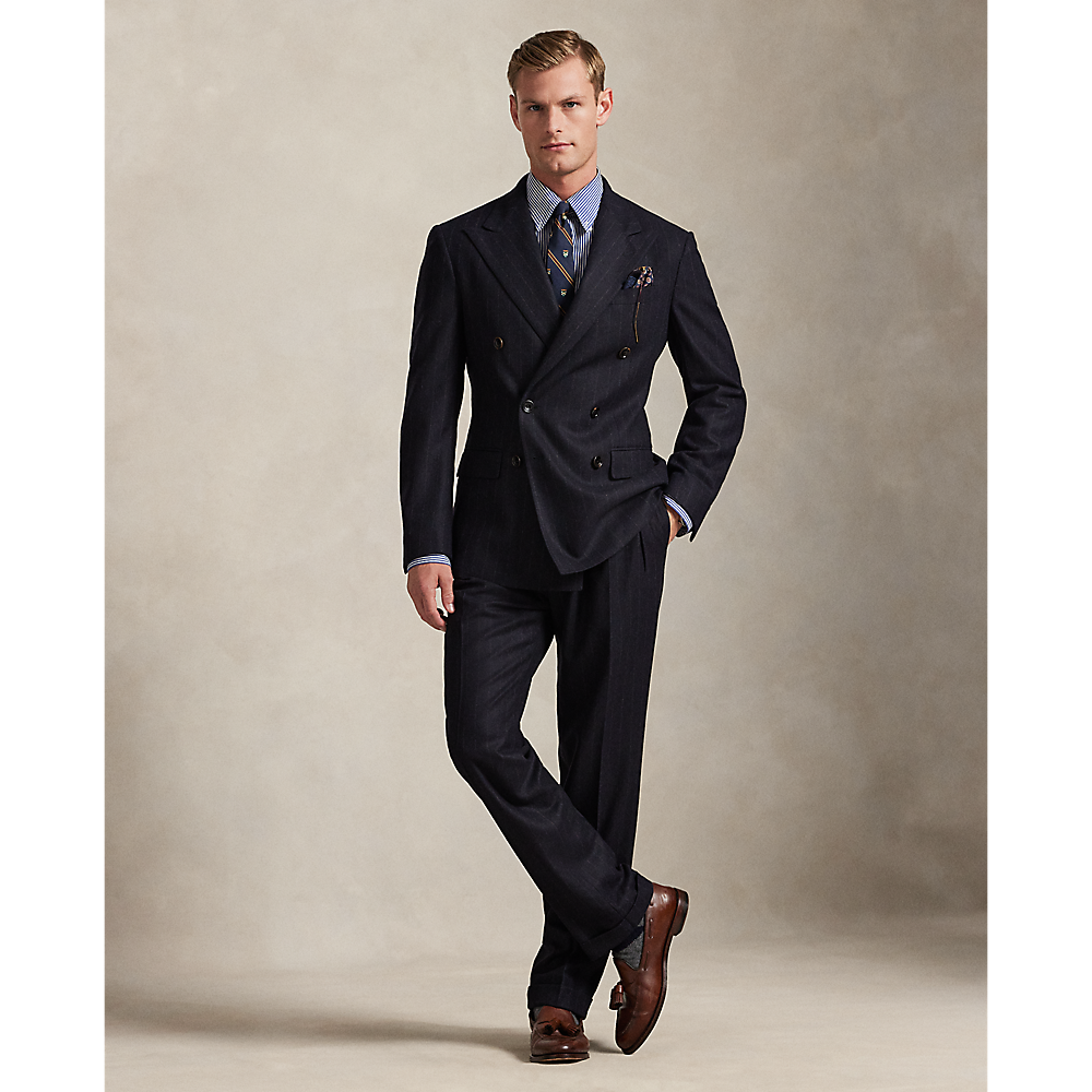 Naš Polo sako pruža veću strukturu u području prsa i ramena te je potpuno podstavljen. Ova verzija s prugastim uzorkom, uparena s hlačama s dvostrukim naborima, stručno je krojena u Italiji od brušenog vunenog flanela koji je posebno razvijen za Ralph Lauren.