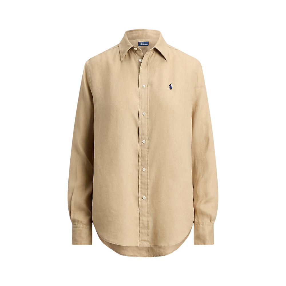 Tkan od laganog lana, ova košulja ravnog kroja detaljno je izrađena s dugmadima od školjke i našim pomno izvezenim prepoznatljivim Ponyjem.
