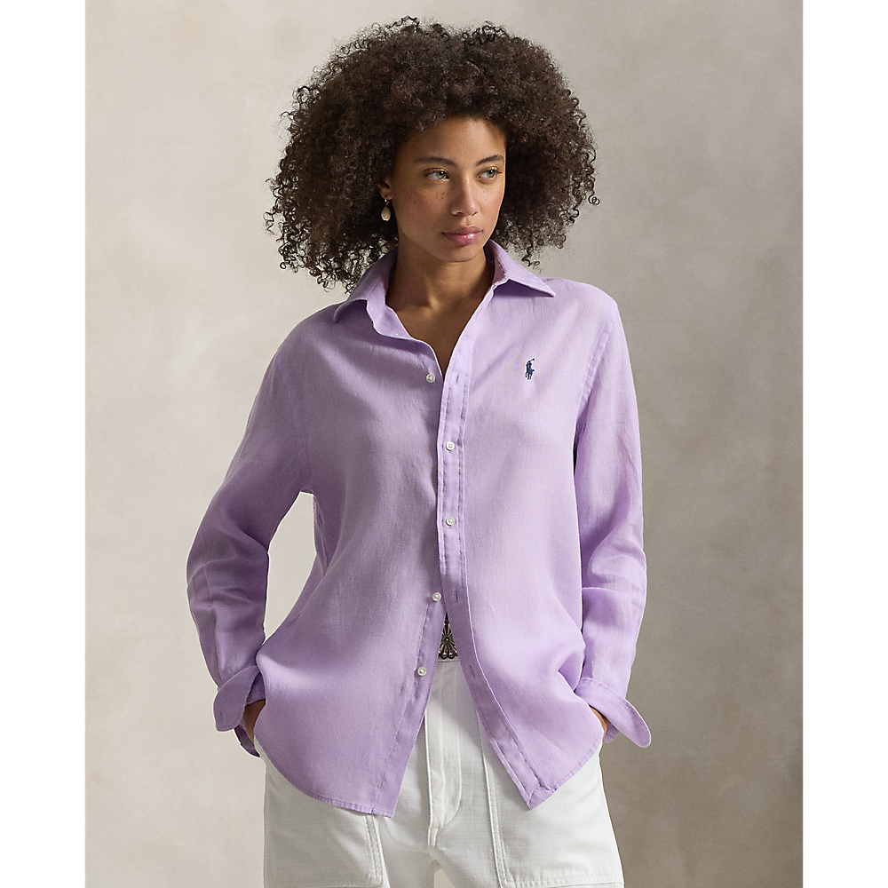 Tkan od laganog lana, ova košulja ravnog kroja detaljno je izrađena s dugmadima od školjke i našim pomno izvezenim prepoznatljivim Ponyjem.