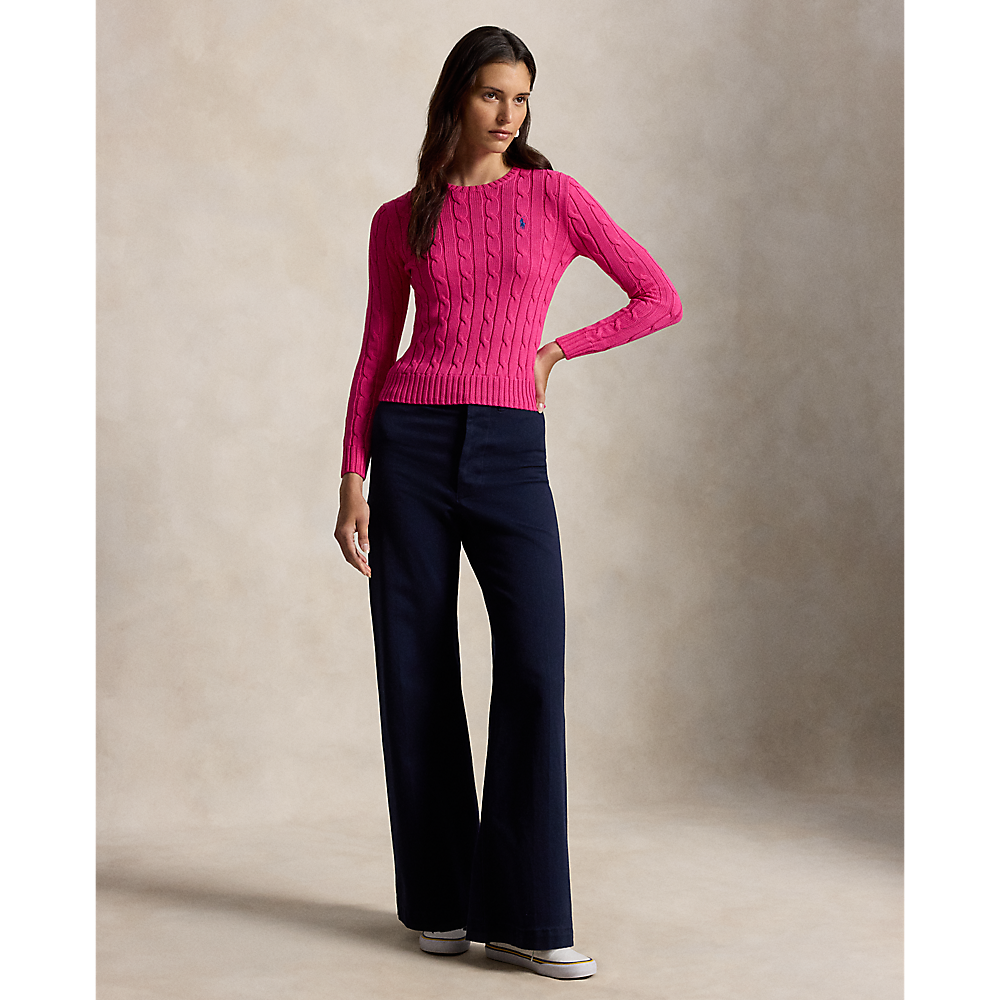 Nezaobilazan Polo komad, ovaj usko krojeni pulover s okruglim izrezom izrađen je od mekane, češljane pamučne pređe i ističe se našim prepoznatljivim kabelskim (pletenim) uzorkom.