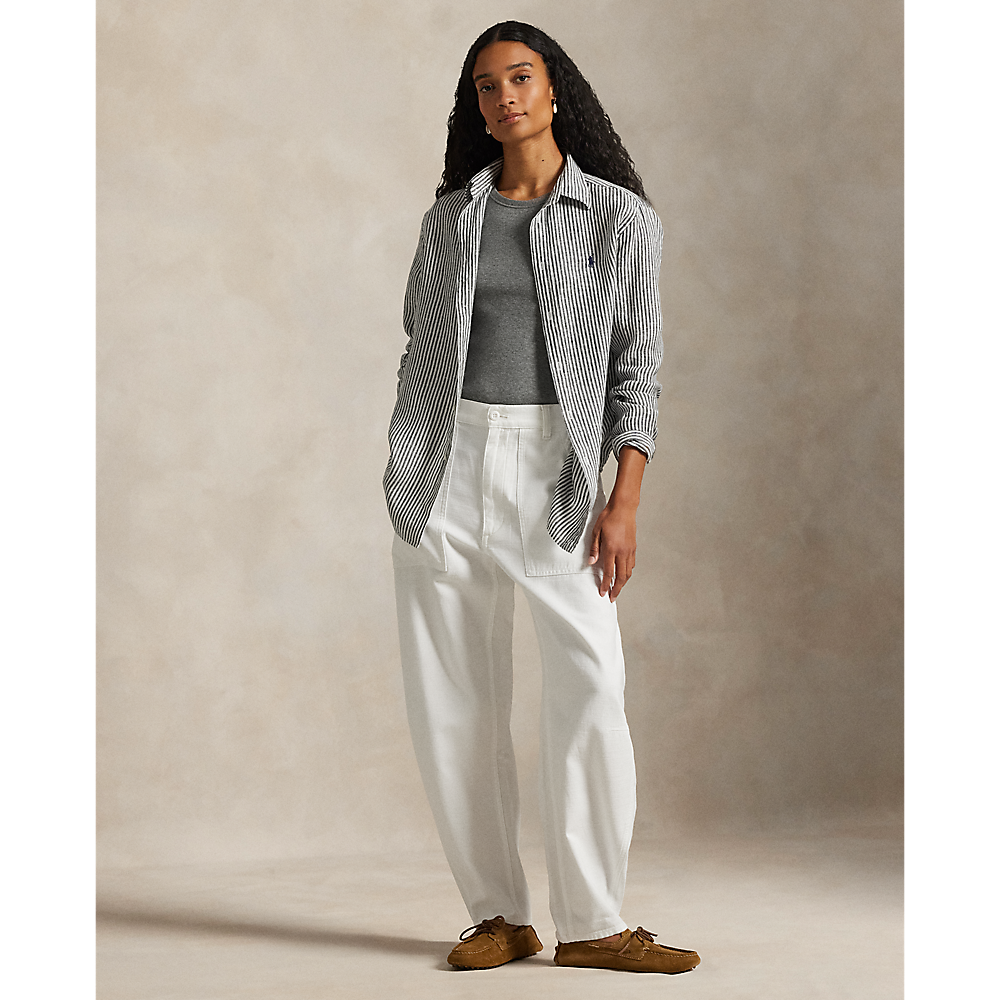 Ralph Lauren hlače Ricky od glatkog pamučnog saten materijala s opuštenim, suženim (tapered) krojem. Detalji uključuju podesive gumbe na struku i praktične džepove u utility stilu.
