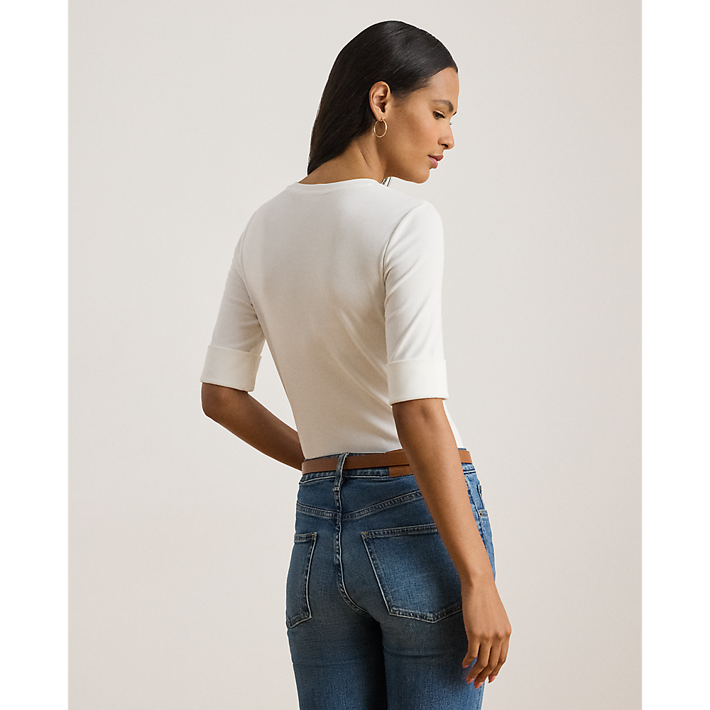 LRL Stretch Cotton Elbow-Sleeve V-Neck Tee/Majica 200815843001