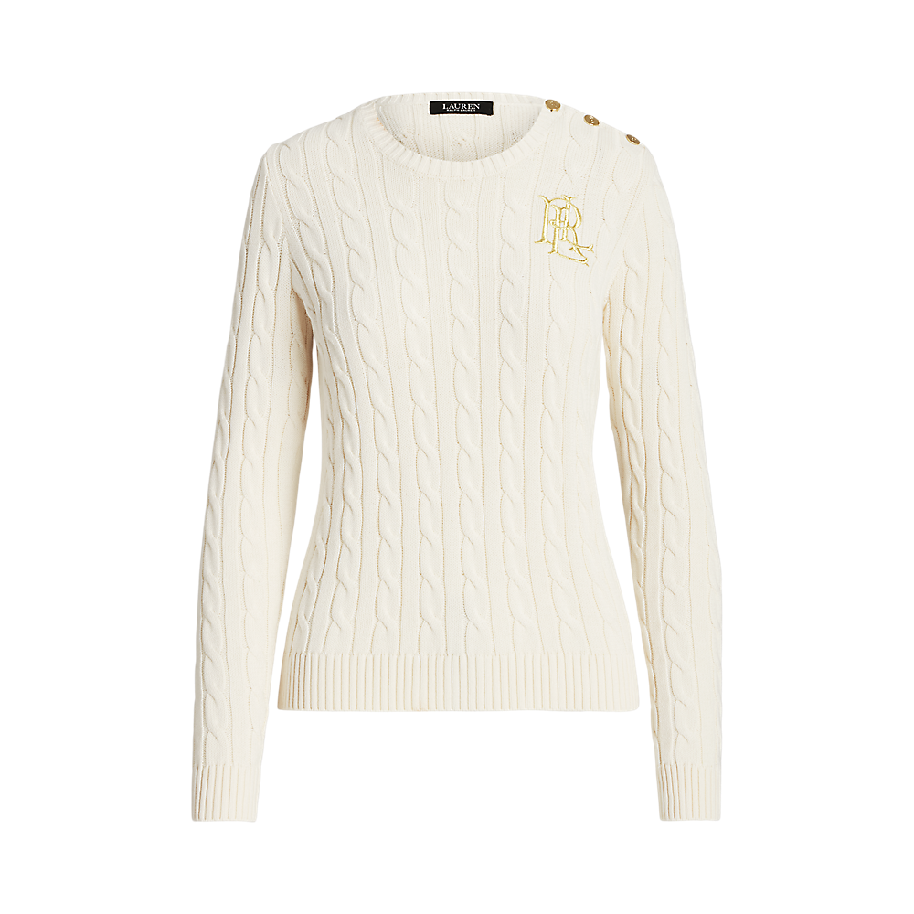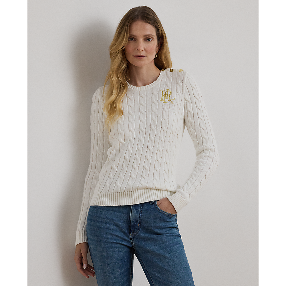 LRL Button-Trim Cable-Knit Cotton Jumper/Pulover 200932223002