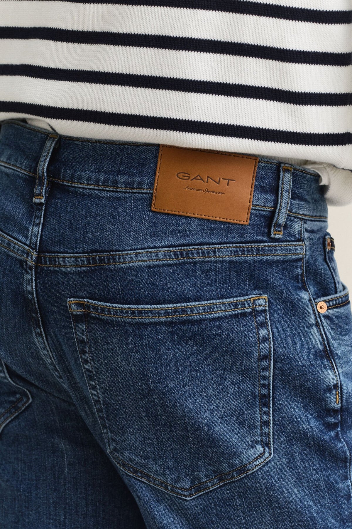 Detalji uključuju klasičan dizajn s 5 džepova, zakovice i gumbe s logotipom brenda, kopčanje na patentni zatvarač te kožnu etiketu na stražnjem dijelu pojasa. Ovaj model ima novi i poboljšani kroj koji odgovara standardnoj veličini. Preporučujemo da odaberete veličinu koju inače nosite kod brenda Gant ili provjerite vodič za veličine za dodatne informacije.