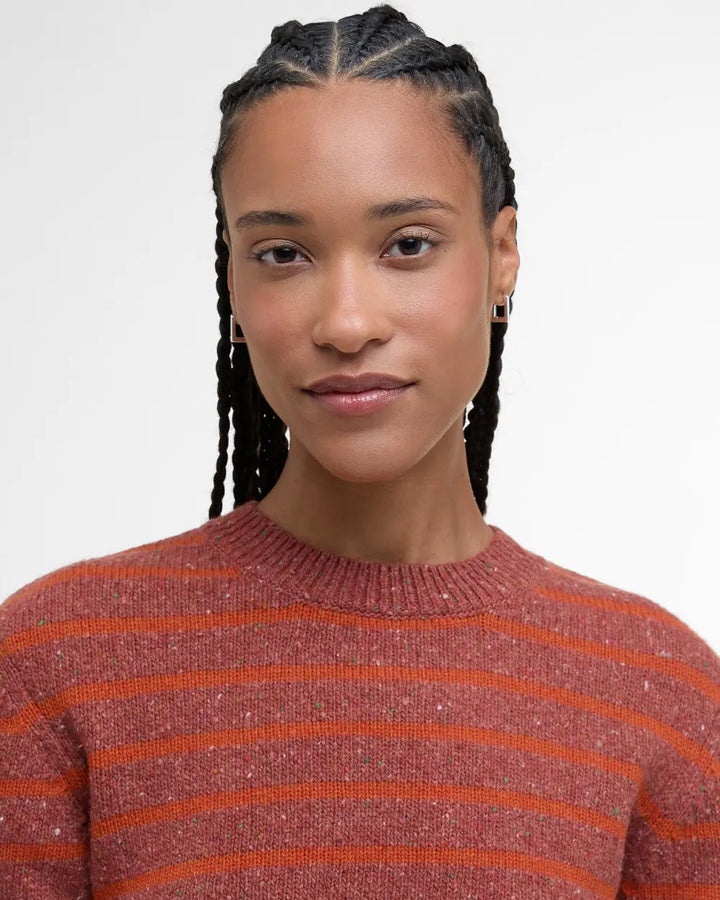 Predstavljajući klasične uzorke na suvremen način, Barbour Claydon pulover s okruglim izrezom i prugama nezaobilazan je komad za prijelazne mjesece. Izrađen od vrhunske mješavine vune, ovaj pulover savršen je za slojevito nošenje. Iako print na prvi pogled može djelovati upečatljivo, idealan je za kombiniranje s krojenim hlačama za pametan, ležeran izgled.