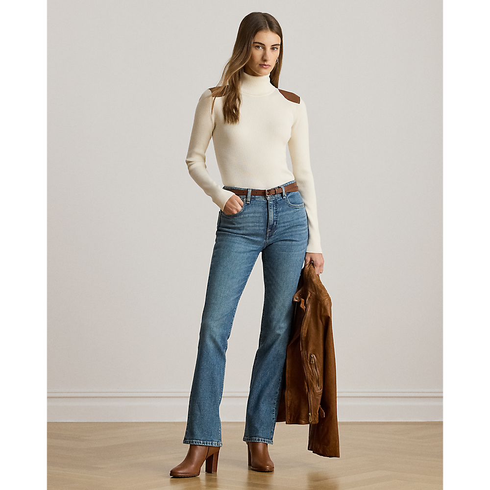 LRL Faux-Leather-Trim Rib-knit Roll Neck/Pulover 200951386001