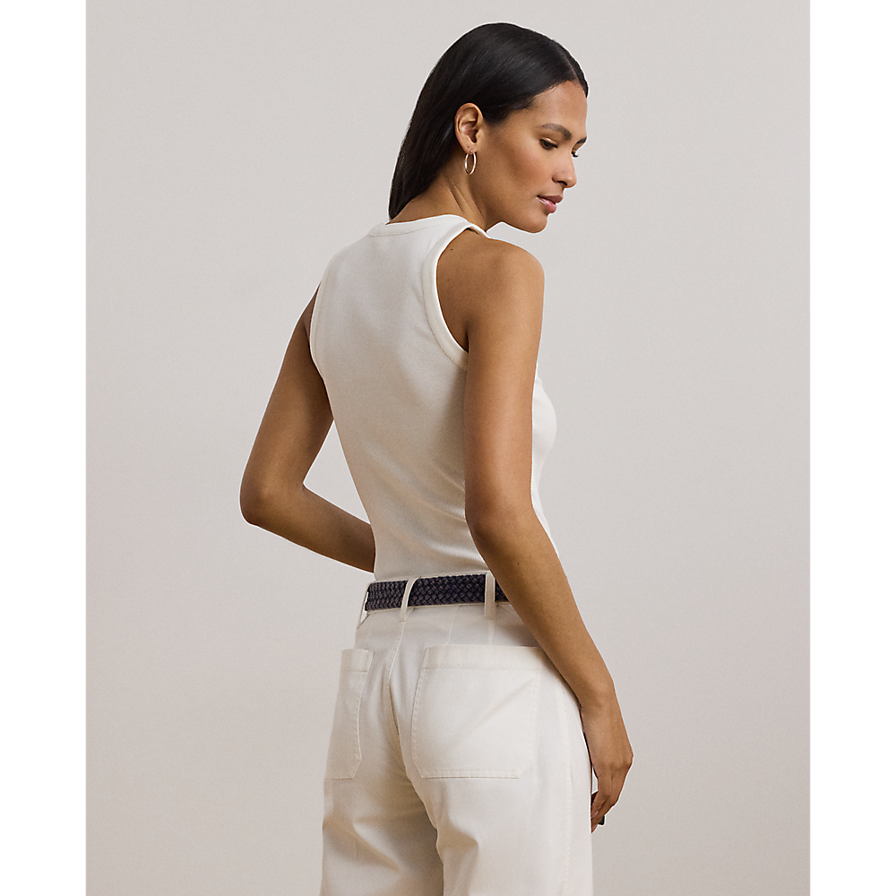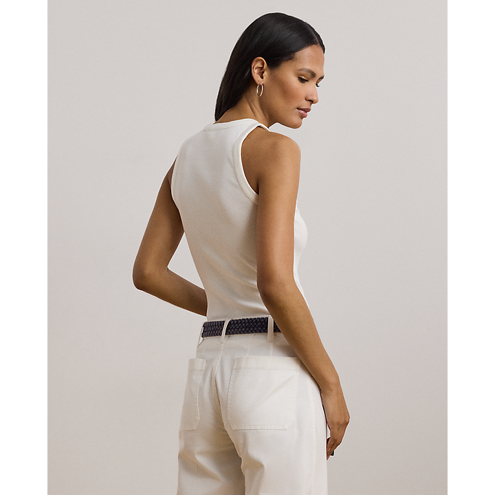 Ovaj ležerni top bez rukava, rebrasto pleten od mekog rastezljivog pamuka, na prsima ima izvezeni logotip "LRL".