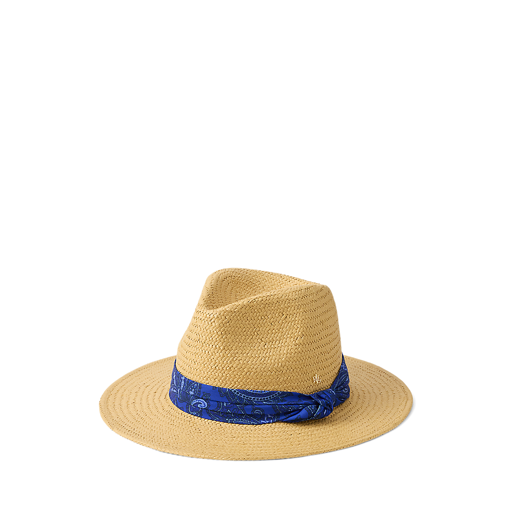 LRL Paisley-Scarf-Trim Straw Fedora/Kapa 454P09810001