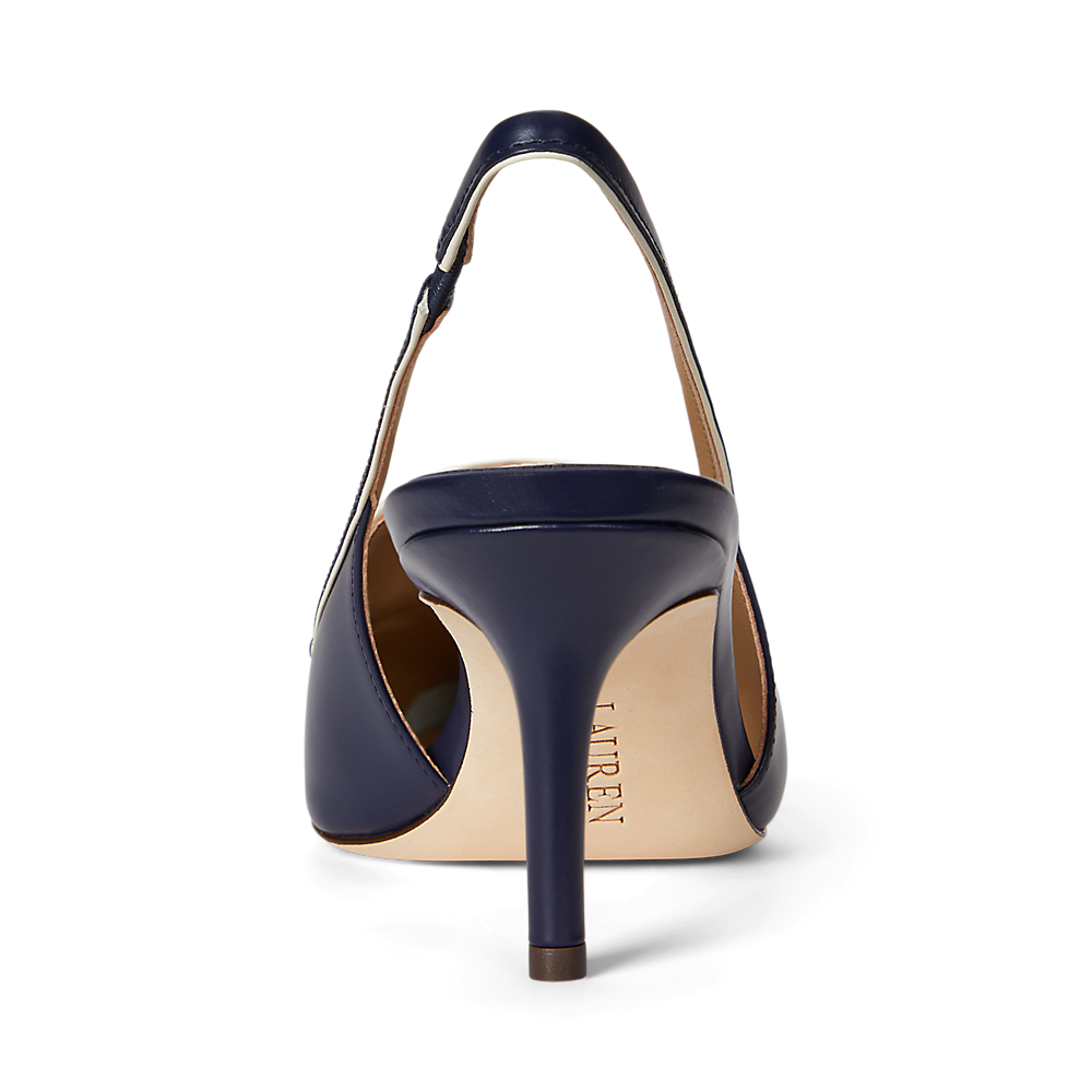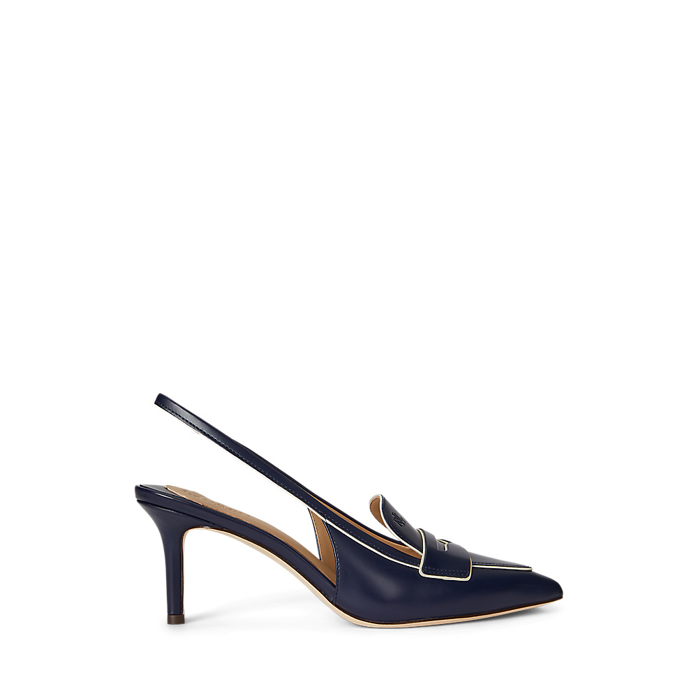 Izrađena od mekane, glazirane kože s kontrastnim obrubima od napa kože, ova verzija Khloe slingback salonke ima siluetu sa šiljastim vrhom i gornjište u stilu penny loafera, postavljeno na vitku petu visine 70 mm.