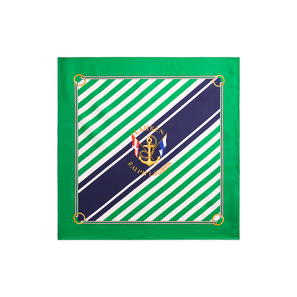 LRL Striped Anchor-Crest Silk Square Scarf/Šal 454P09785001