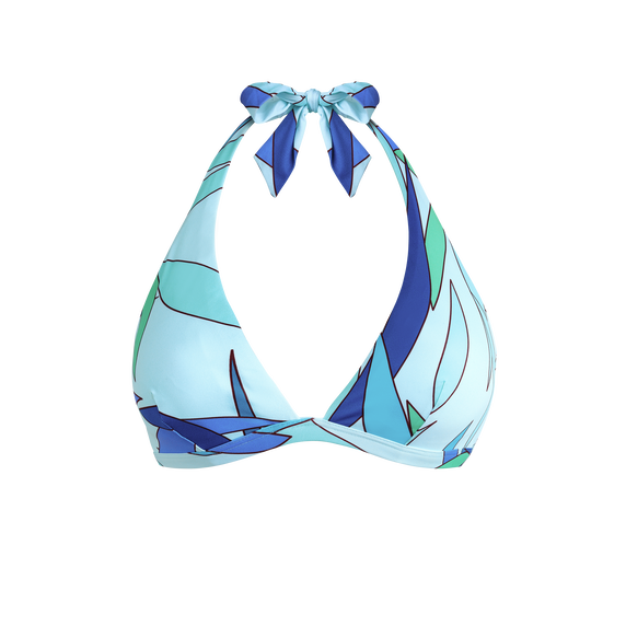 Bikini top s vezicom oko vrata i printom, koji nudi sofisticirani stil koji ističe ramena. Izrađen od recikliranog poliamida i elastana, uklonjive podstave pružaju pokrivanje i oblik.