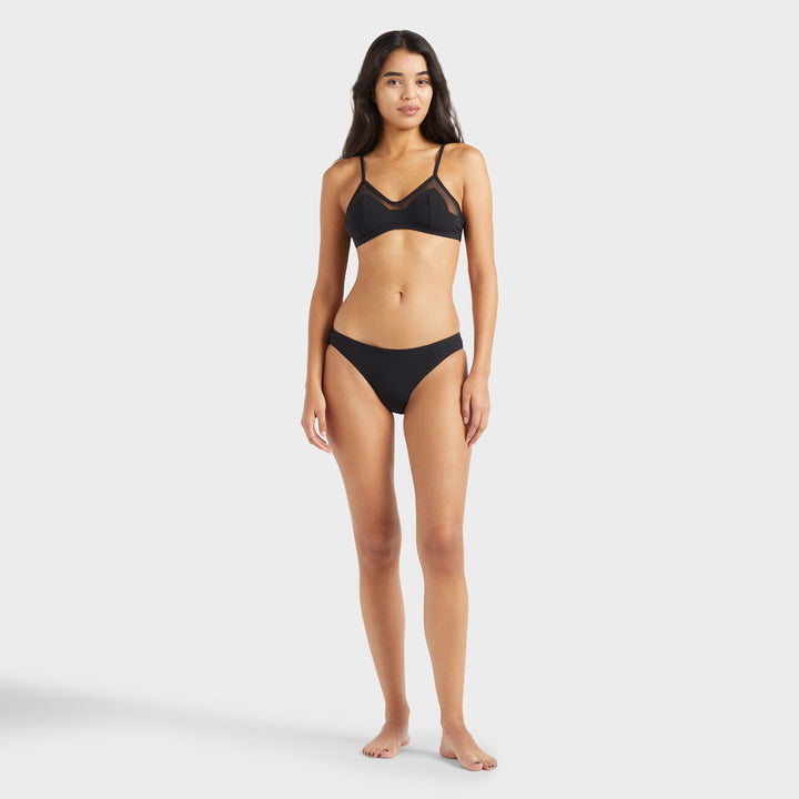 Elegantan bikini gornji dio u obliku grudnjaka, izrađen od udobnog rastezljivog jerseya, s podesivim naramenicama straga za savršeno pristajanje. Prozirni umetak daje odvažan dojam, dok podstava iznutra osigurava odgovarajuće prekrivanje.