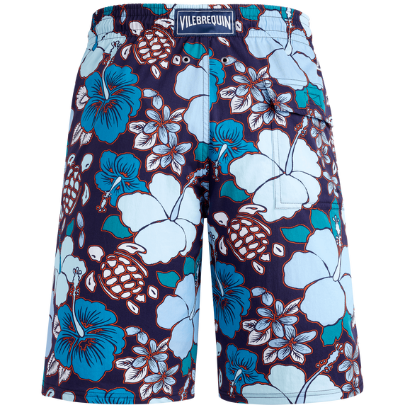 Budite tropski u ovim dugim muškim kupaćim hlačama s printom i elastičnim pojasom i vezom za opušteno pristajanje te korisnim stražnjim i bočnim džepovima.