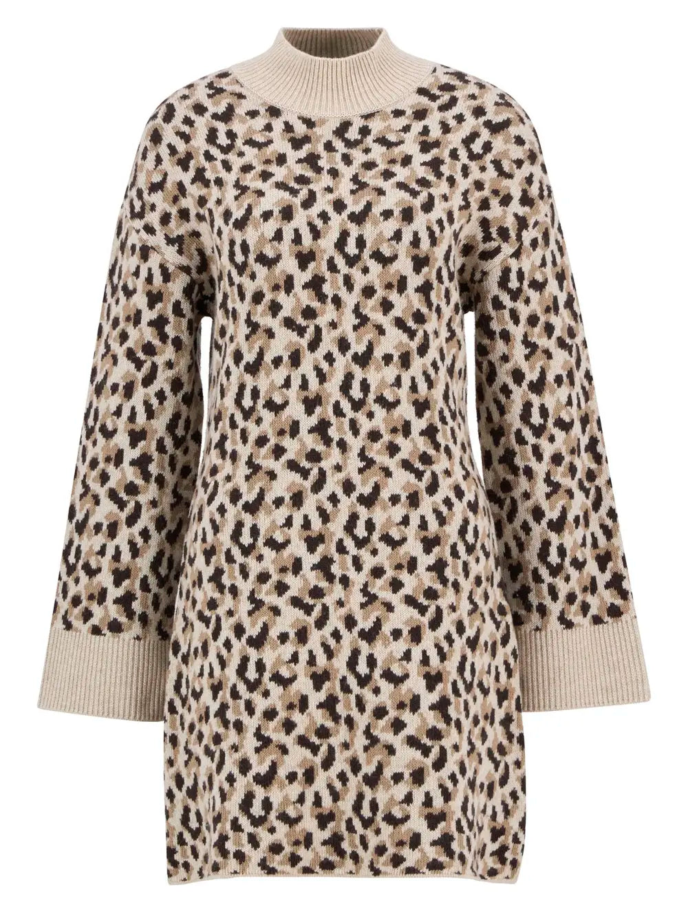 Unesi dašak sofisticiranosti u svoju sezonsku kolekciju pletenine uz B.Intl Juliana pletenu mini haljinu. Izrađena od mekane mješavine vune s upečatljivim animal printom, ova haljina ističe se visokim ovratnikom koji dodaje nježan, elegantan naglasak tvojem izgledu.