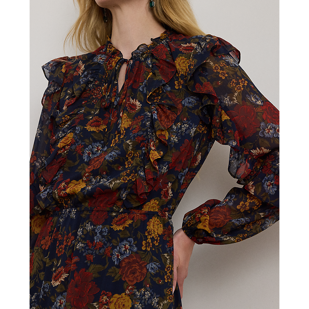 LRL Floral Crinkle Georgette Tiered Dress/Haljina 200979789001