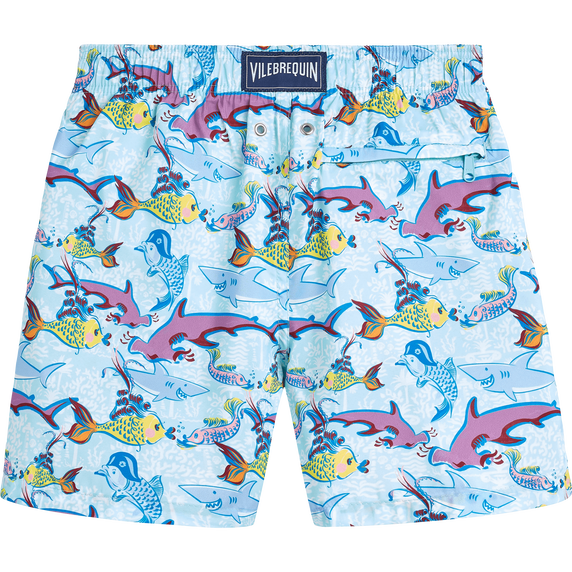 Dječja verzija ovih tiskanih kupaćih hlačica brzo se suši i preklapa se u stražnji džep. Izrađen od laganog recikliranog poliestera i s elastičnim pojasom.