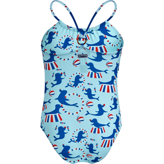 Savršen za sunčane dane, jednodijelni kupaći kostim za djevojčice u živopisnom cirkuskom printu izrađen je od udobnog recikliranog poliamida i elastana i ima podesive dužine naramenica.